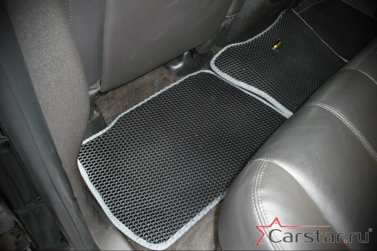 Толщина ковриков EVA составляет 10-12 мм. Глубина ячеек 7-8 мм. Такая толщина ковриков позволяет им служить довольно долго, не протираясь до 3 лет. А благодаря такой глубине ячеек коврик EVA площадью 1 кв.м. способен захватить около 3,5 л жидкости, сохраняя в чистоте вашу обувь и обивку салона.