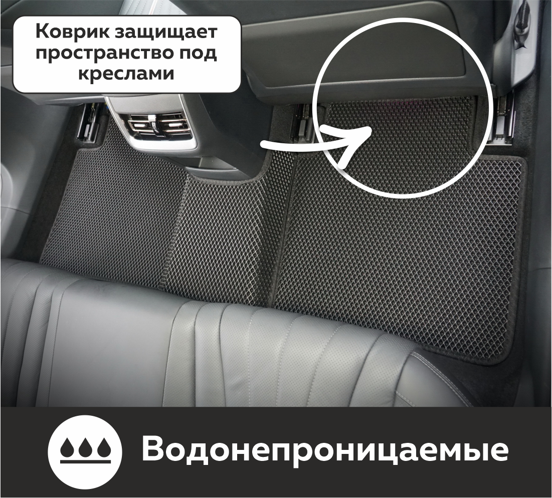 Изделия EVA имеют специальную ячеистую структуру (ячейки глубиной 8 мм), которая эффективно задерживает грязь и воду, оставляя вашу обувь и поверхность обивки салона или багажника абсолютно чистыми. Также эти ячейки очень легко и быстро очищаются без применения специальных инструментов, в том числе, при помощи бесконтактной мойки.