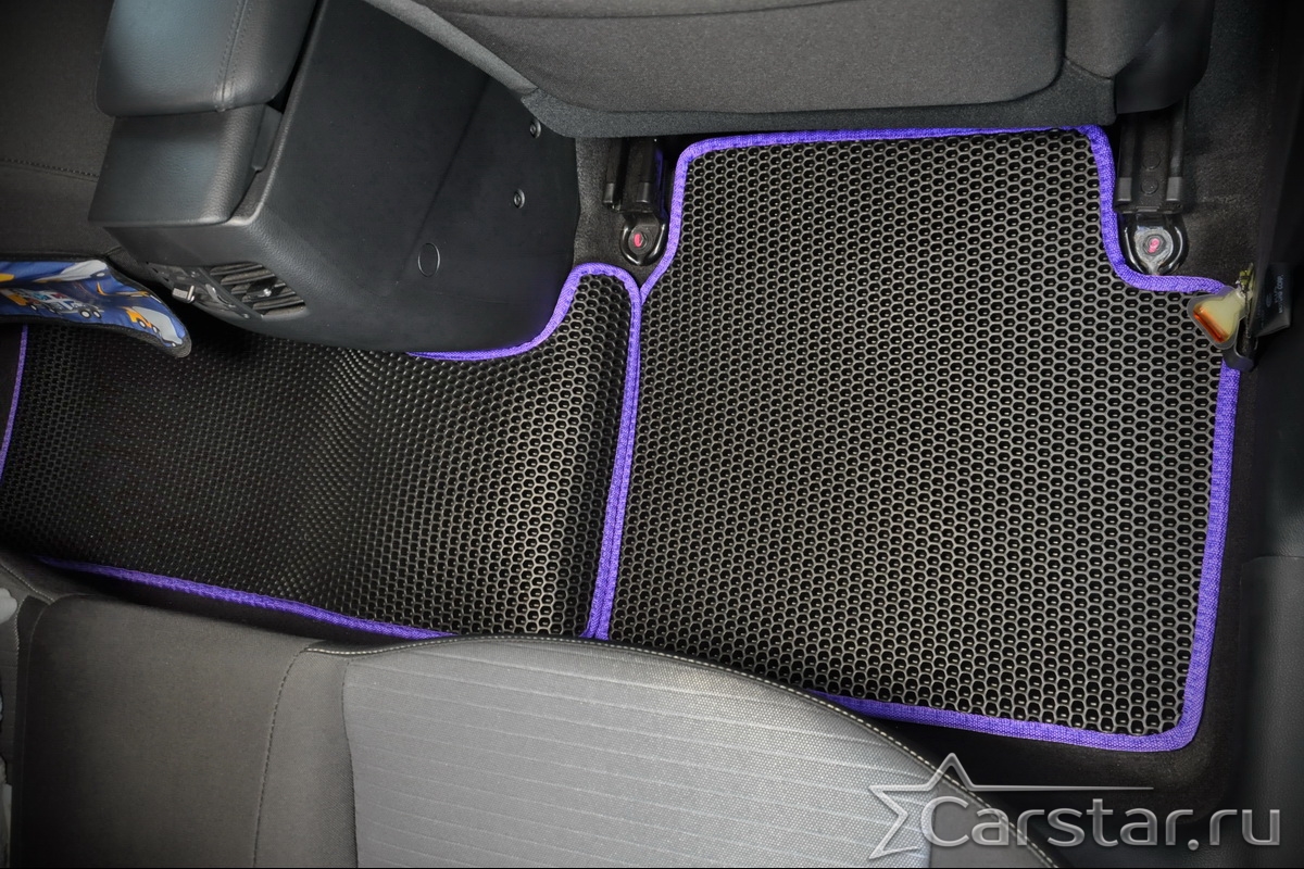 Толщина ковриков EVA составляет 10-12 мм. Глубина ячеек 7-8 мм. Такая толщина ковриков позволяет им служить довольно долго, не протираясь до 3 лет. А благодаря такой глубине ячеек коврик EVA площадью 1 кв.м. способен захватить около 3,5 л жидкости, сохраняя в чистоте вашу обувь и обивку салона.
