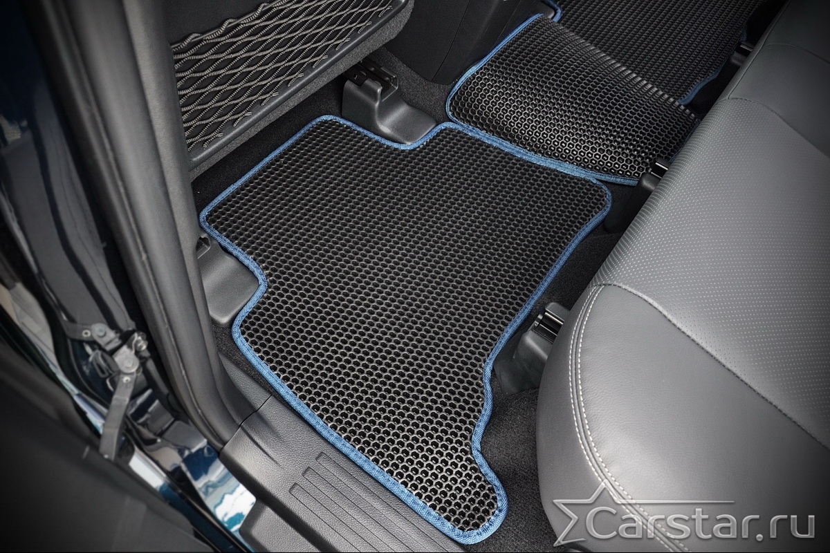 Толщина ковриков EVA составляет 10-12 мм. Глубина ячеек 7-8 мм. Такая толщина ковриков позволяет им служить довольно долго, не протираясь до 3 лет. А благодаря такой глубине ячеек коврик EVA площадью 1 кв.м. способен захватить около 3,5 л жидкости, сохраняя в чистоте вашу обувь и обивку салона.