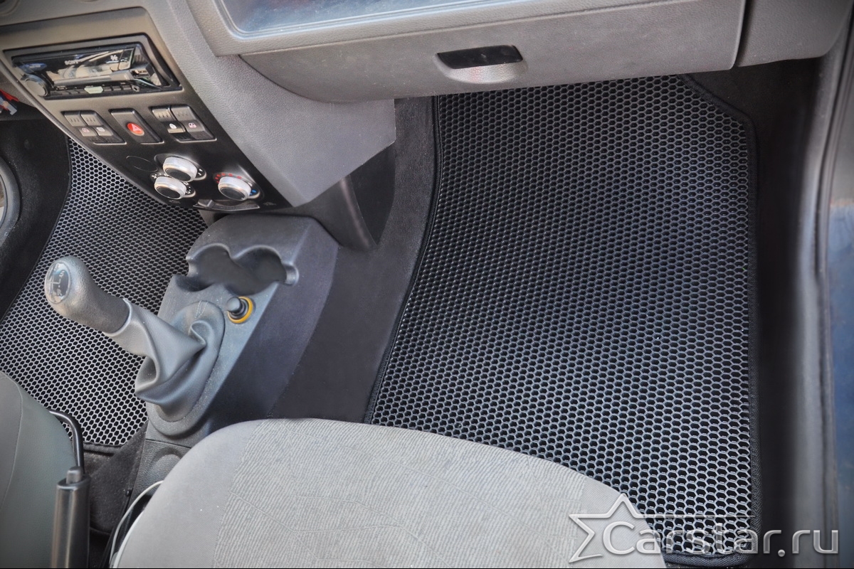 Толщина ковриков EVA составляет 10-12 мм. Глубина ячеек 7-8 мм. Такая толщина ковриков позволяет им служить довольно долго, не протираясь до 3 лет. А благодаря такой глубине ячеек коврик EVA площадью 1 кв.м. способен захватить около 3,5 л жидкости, сохраняя в чистоте вашу обувь и обивку салона.