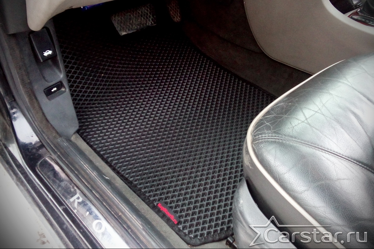 Толщина ковриков EVA составляет 10-12 мм. Глубина ячеек 7-8 мм. Такая толщина ковриков позволяет им служить довольно долго, не протираясь до 3 лет. А благодаря такой глубине ячеек коврик EVA площадью 1 кв.м. способен захватить около 3,5 л жидкости, сохраняя в чистоте вашу обувь и обивку салона.