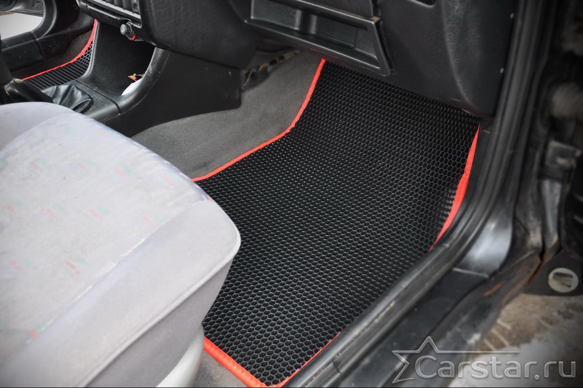 Толщина ковриков EVA составляет 10-12 мм. Глубина ячеек 7-8 мм. Такая толщина ковриков позволяет им служить довольно долго, не протираясь до 3 лет. А благодаря такой глубине ячеек коврик EVA площадью 1 кв.м. способен захватить около 3,5 л жидкости, сохраняя в чистоте вашу обувь и обивку салона.
