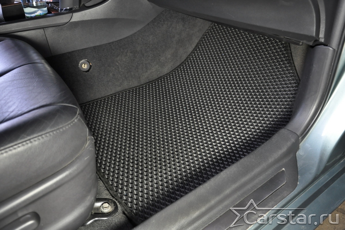 Толщина ковриков EVA составляет 10-12 мм. Глубина ячеек 7-8 мм. Такая толщина ковриков позволяет им служить довольно долго, не протираясь до 3 лет. А благодаря такой глубине ячеек коврик EVA площадью 1 кв.м. способен захватить около 3,5 л жидкости, сохраняя в чистоте вашу обувь и обивку салона.
