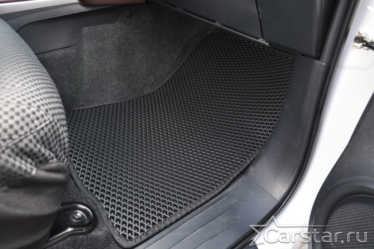 Автомобильные коврики EVA прекрасно подходят для всех существующих марок и моделей авто, здесь вы сможете заказать оптимальный аксессуар любого возможного цвета. По размерам они больше, чем стандартные резиновые коврики, поэтому покрывают максимальную площадь пола в салоне. А двойная система креплений (клипсы и липучки) позволяет надежно зафиксировать коврики в нужном месте.
