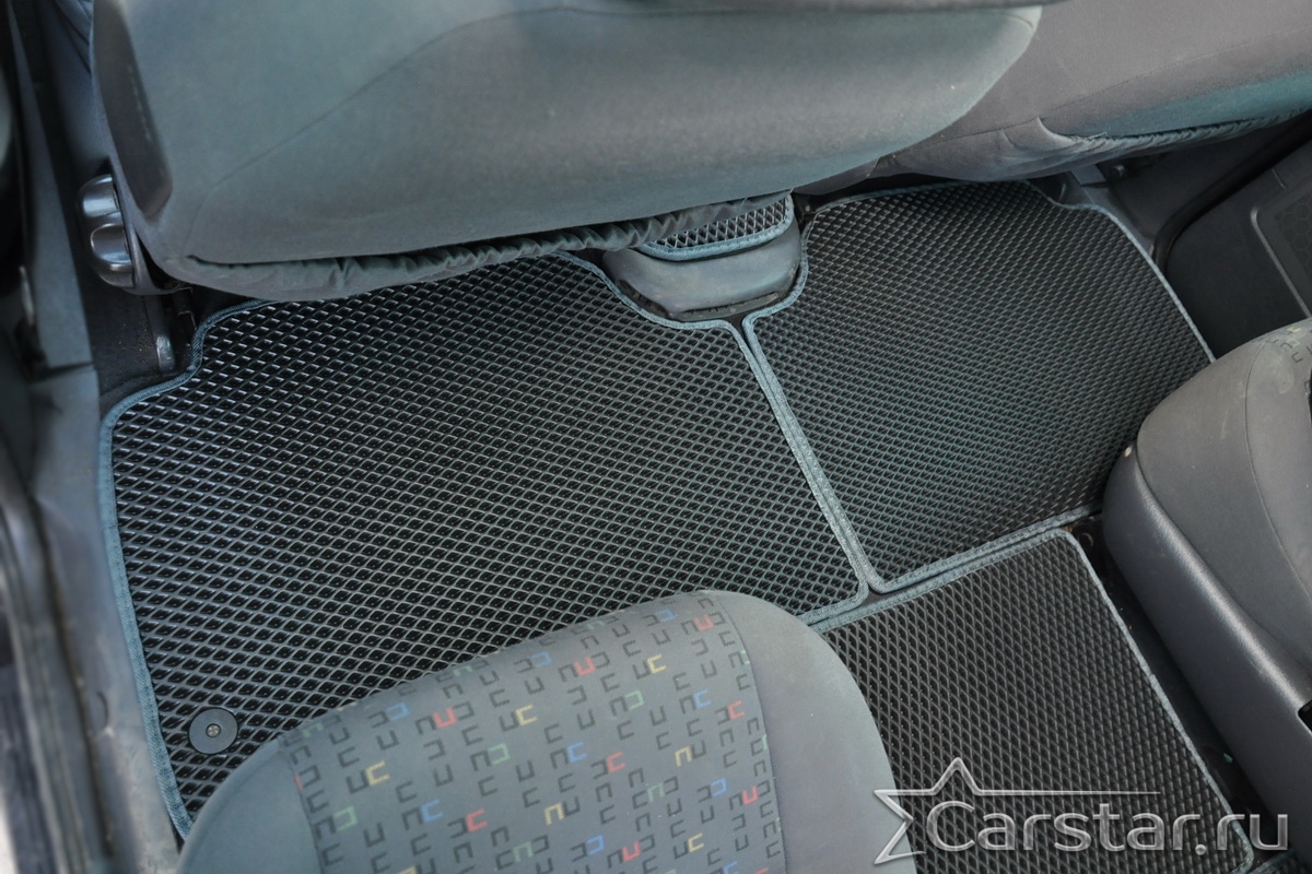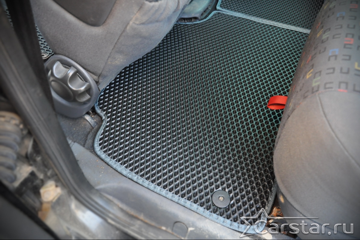 Толщина ковриков EVA составляет 10-12 мм. Глубина ячеек 7-8 мм. Такая толщина ковриков позволяет им служить довольно долго, не протираясь до 3 лет. А благодаря такой глубине ячеек коврик EVA площадью 1 кв.м. способен захватить около 3,5 л жидкости, сохраняя в чистоте вашу обувь и обивку салона.