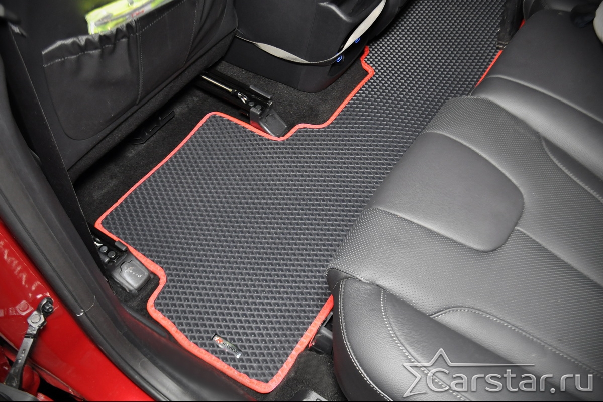 Текстильные коврики надёжно крепятся с помощью оригинальных систем фиксации. Обратная сторона имеет противоскользящее покрытие, что обеспечивает защиту от смещений и безопасность. Максимальное удобство достигается точными лекалами.