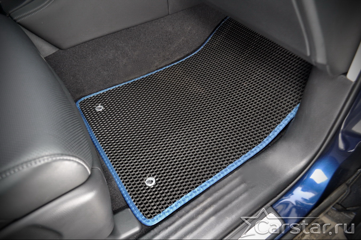 Текстильные коврики надёжно крепятся с помощью оригинальных систем фиксации. Обратная сторона имеет противоскользящее покрытие, что обеспечивает защиту от смещений и безопасность. Максимальное удобство достигается точными лекалами.