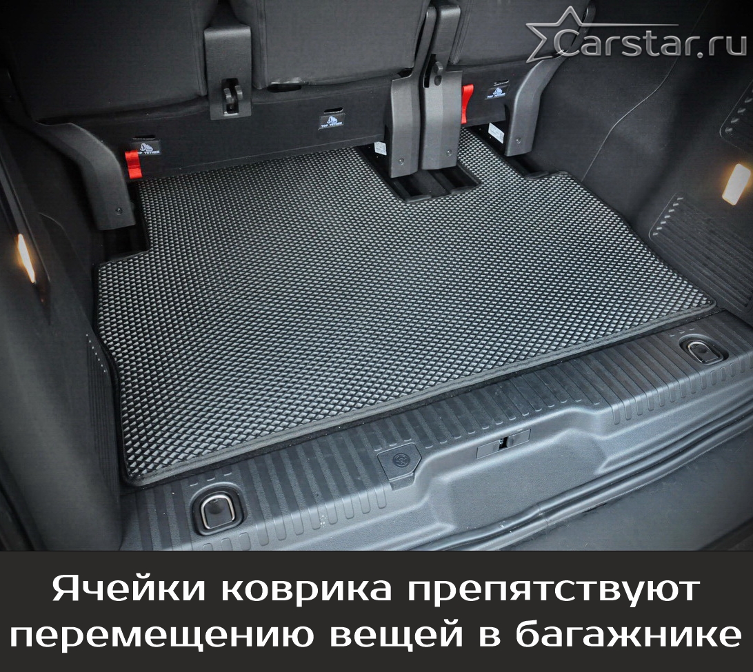 Нижняя часть ковра изготавливается из термопластичной резины с шипами 2-3 мм по всей поверхности, что предотвращает скольжение коврика по салону автомобиля.