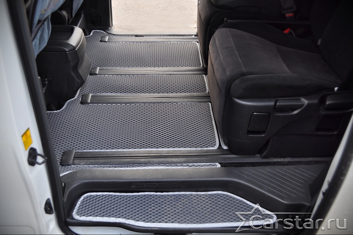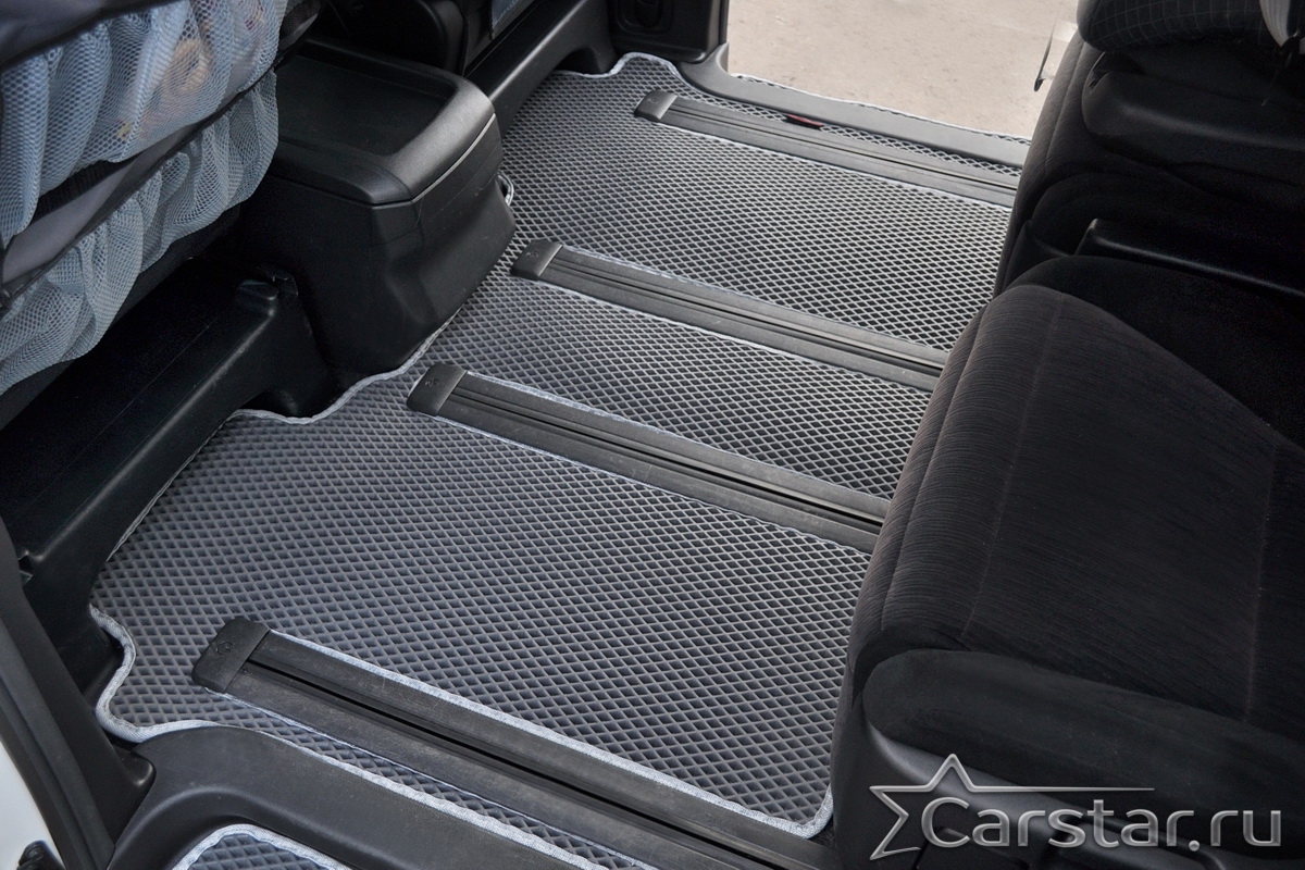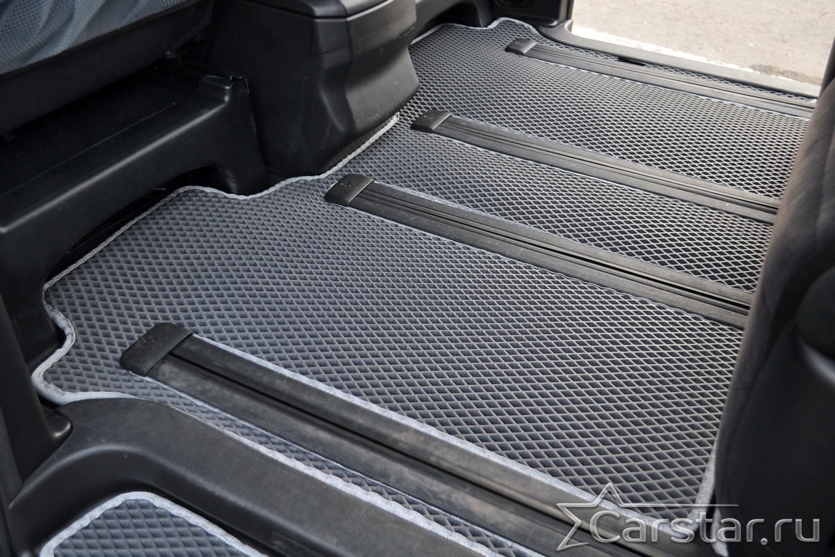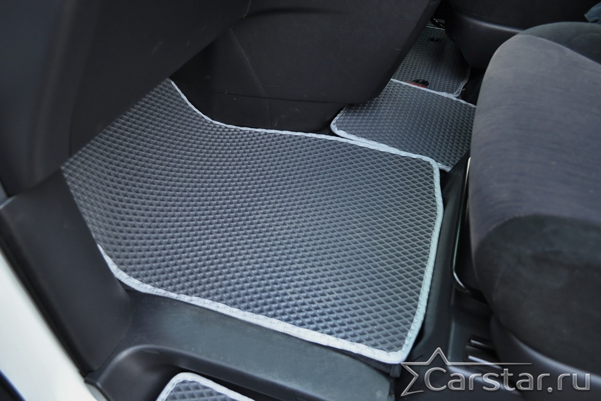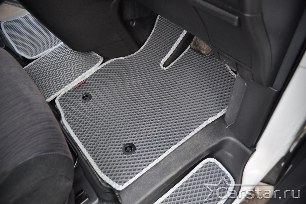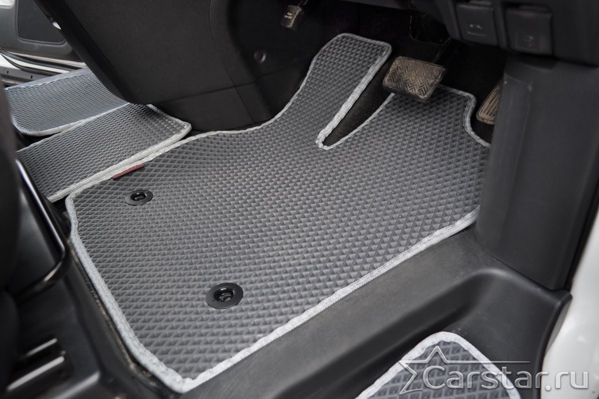 Текстильные коврики надёжно крепятся с помощью оригинальных систем фиксации. Обратная сторона имеет противоскользящее покрытие, что обеспечивает защиту от смещений и безопасность. Максимальное удобство достигается точными лекалами.